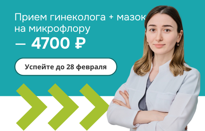 Акция включает консультацию врача-акушера-гинеколога и лабораторное исследование микрофлоры влагалища методом ПЦР — Фемофлор скрин.
