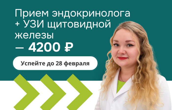 Акция объединяет консультацию эндокринолога и ультразвуковое исследование щитовидной железы.