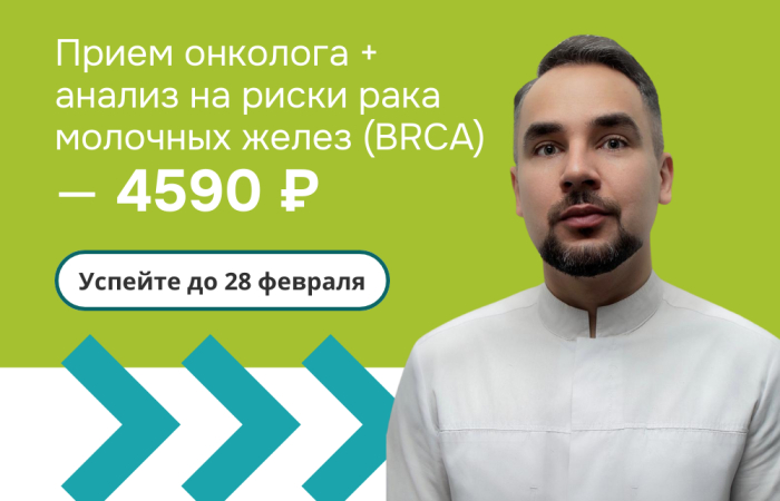 Акция включает консультацию врача-онколога и генетическое исследование на мутации BRCA1 и BRCA2, ассоциированные с повышенным риском рака молочных желез и яичников.